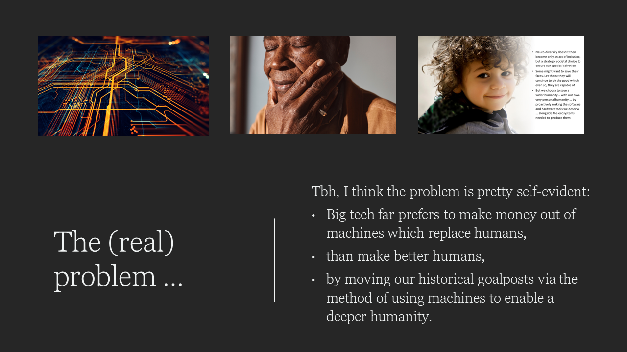 I'd really like us to consider an alternative set of #tech #architectures to the #oneworstway I sketch out in the #whitepaper linked to above, as well as the six points re #ai- and #it-#tech that to my mind need urgently addressing, and which I also outline here: